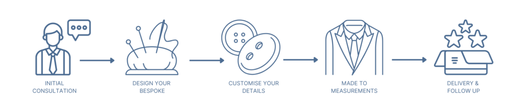 First, you will be introduced to our expert-style consultants at the convenience of your home/office. They will spend some time with you to learn about your style preferences and show you what’s on offer. They will show you the different bespoke styles and the range of exclusive fabrics you can choose from.